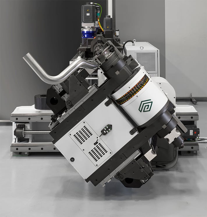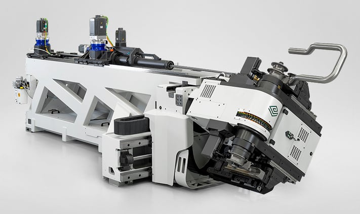 Le curvatubi per tubi e barre di grande diametro sono impianti capaci di applicare le notevoli forze di spinta e coppia di curvatura necessarie per piegare tubi di grande dimensione e sono anche in grado di controllare in modo ottimale la forza esercitata sul tubo e la deformazione del materiale attraverso il movimento interpolato di anima, slitta e bloccaggio.
