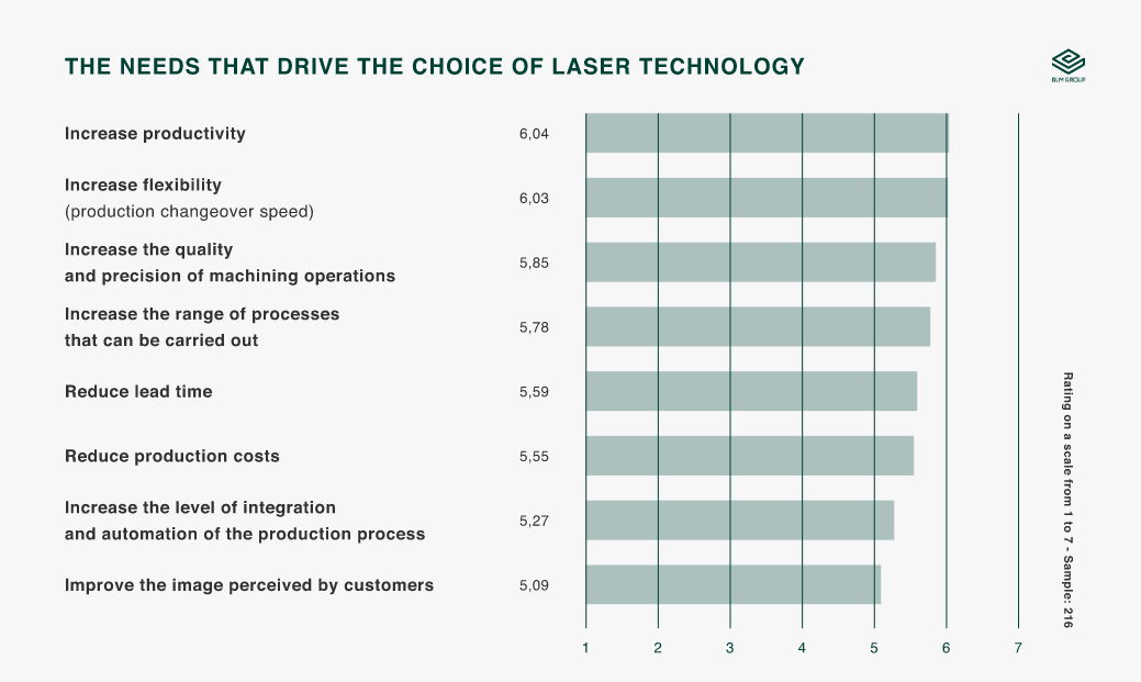 The following table shows the results of the Go-To-Market analysis: Increasing effectiveness in value proposition, conducted from April to May 2017 on a total sample of 397 units (BLM Group laser customers / competitor brand laser customers / non-laser users).